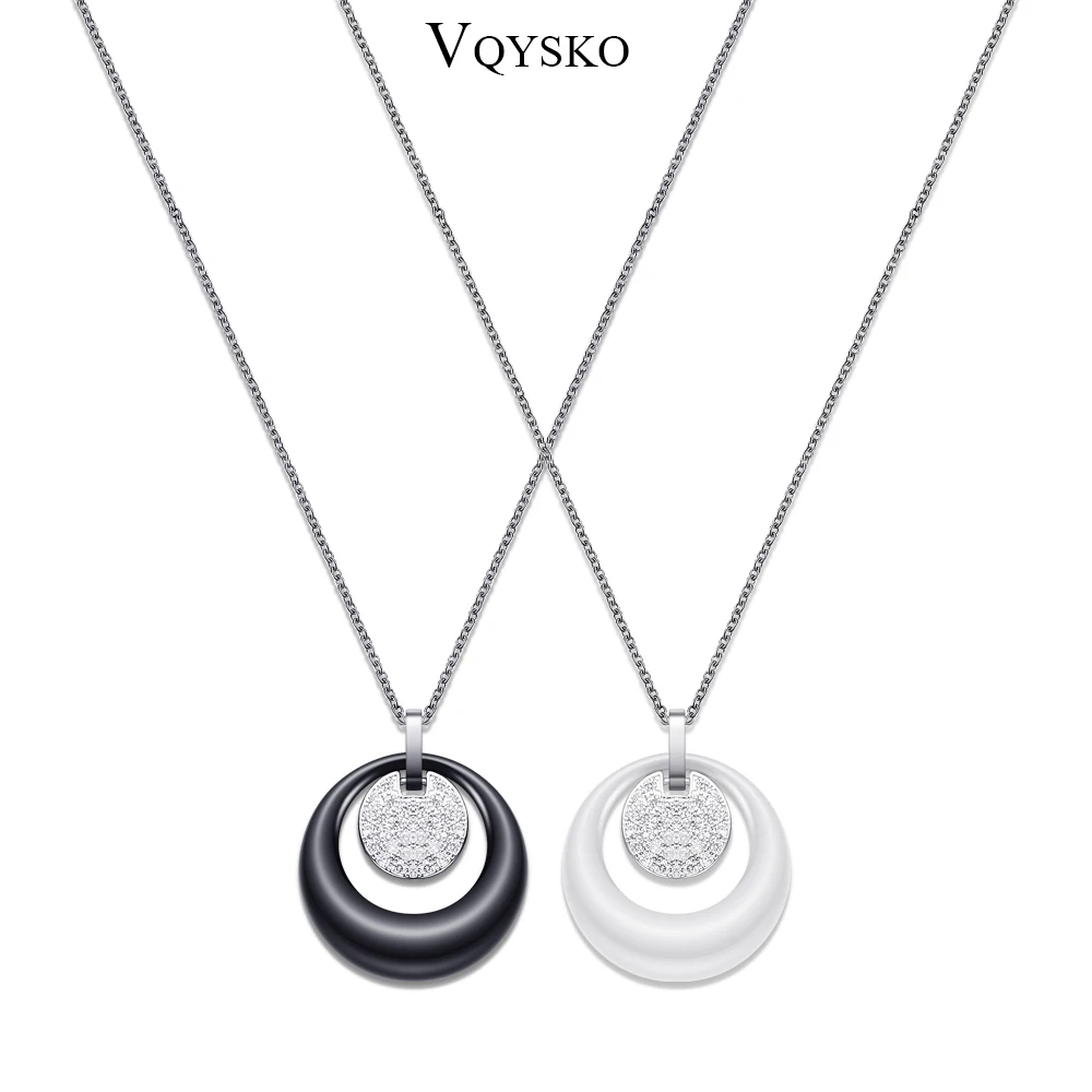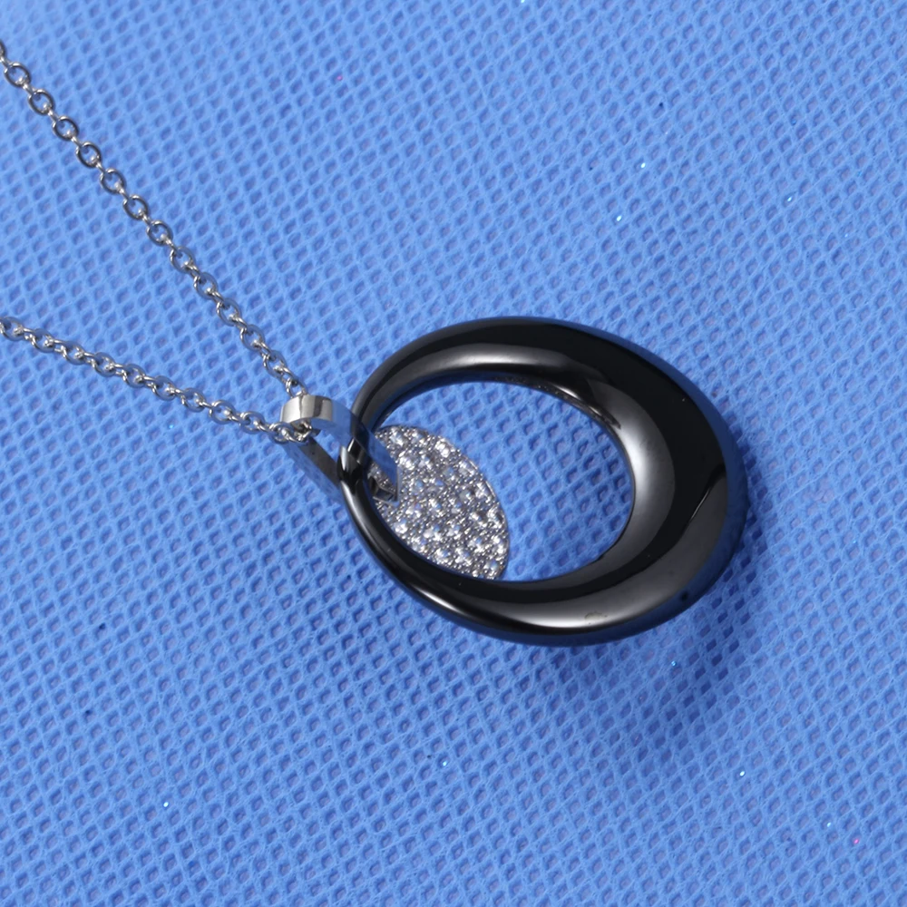 Fashion Jewelry Simple Black Ceramic Circle Pendant Necklaces With Women's Stainless Steel Circles Necklace & Pendants,Healthy White Ceramic Necklace Female Short Design Crystal Ball Chain For Wedding Christmas Gift Elegant, Healthy White Ceramic Necklace Female Short Design Crystal Ball Chain For Wedding Christmas Gift Elegant